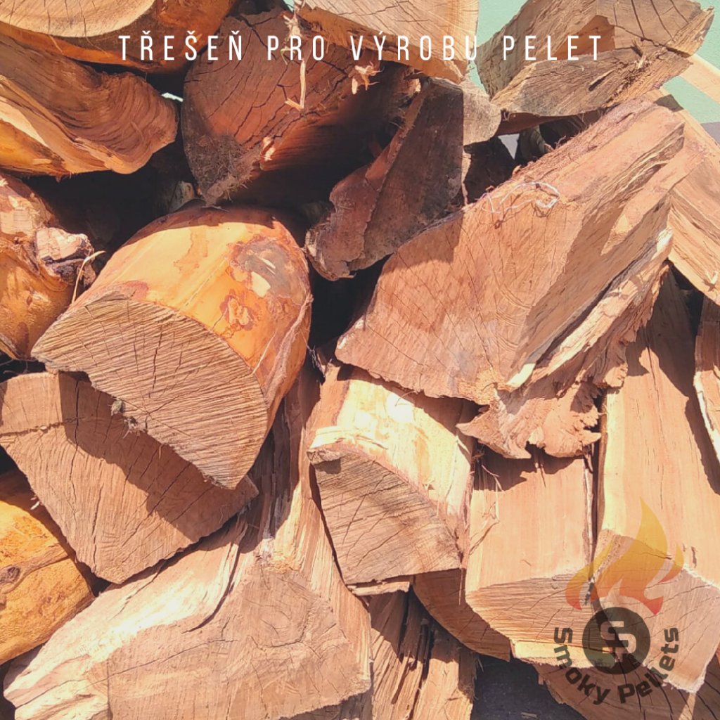 Na výrobu pelet jsme zpracovali kvalitní materiál, který jsme odkůrovali a následně zpracovali na štěpku (viz. foto).