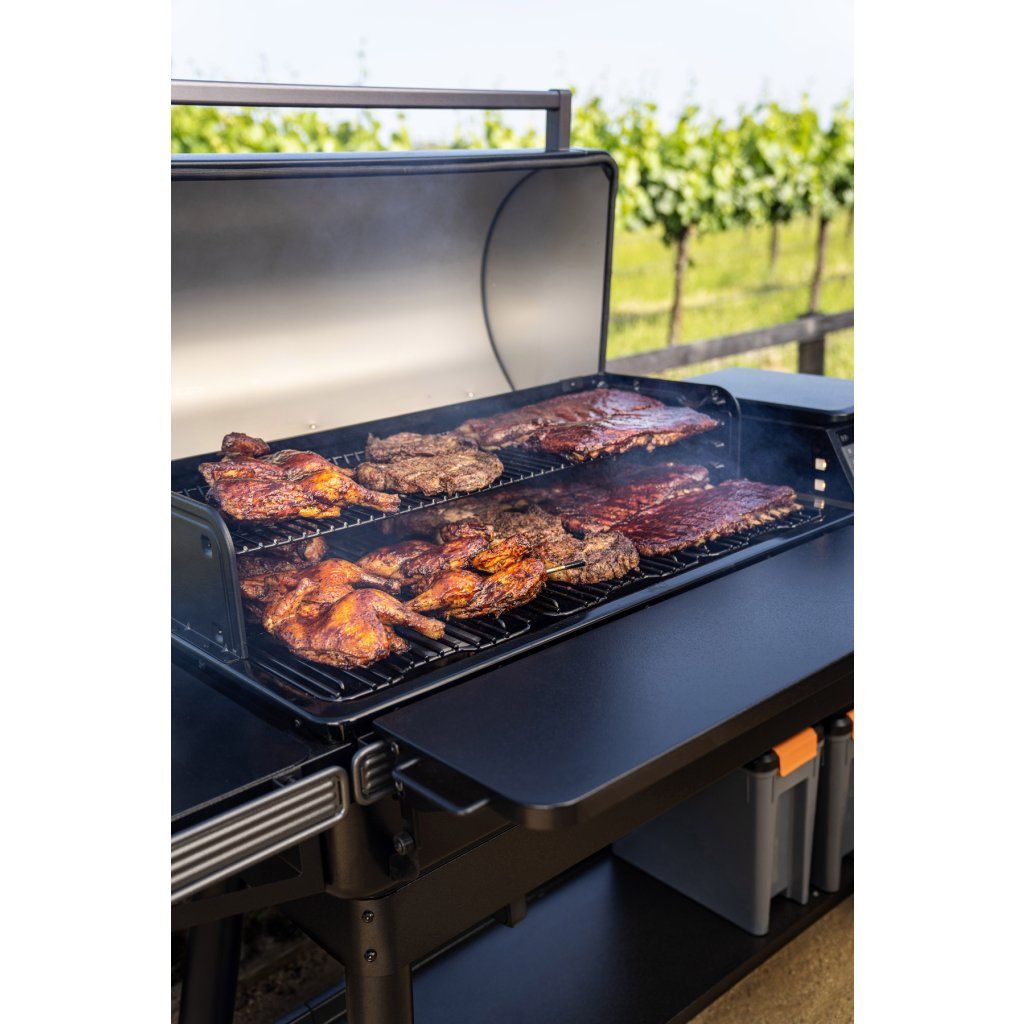 A kouř? Tady je to vyladěné tak, aby se ti kouř netoulal kam nemá, ale pracoval pro tebe. Downdraft Exhaust drží proudění kouře přes kolem jídla a když chceš přitlačit na pilu, Super Smoke ti přidá “dřevěnou signaturu”, kterou na plynu ani na elektrice prostě neuděláš.