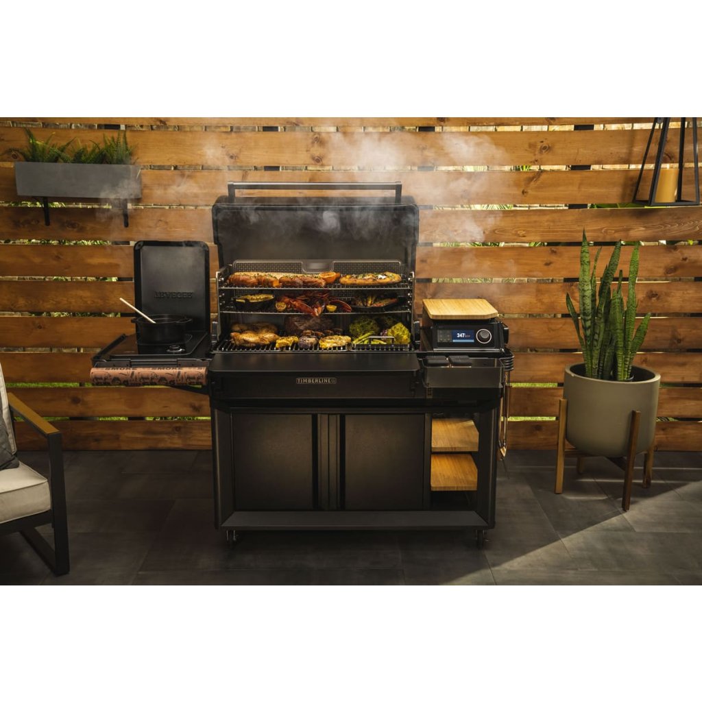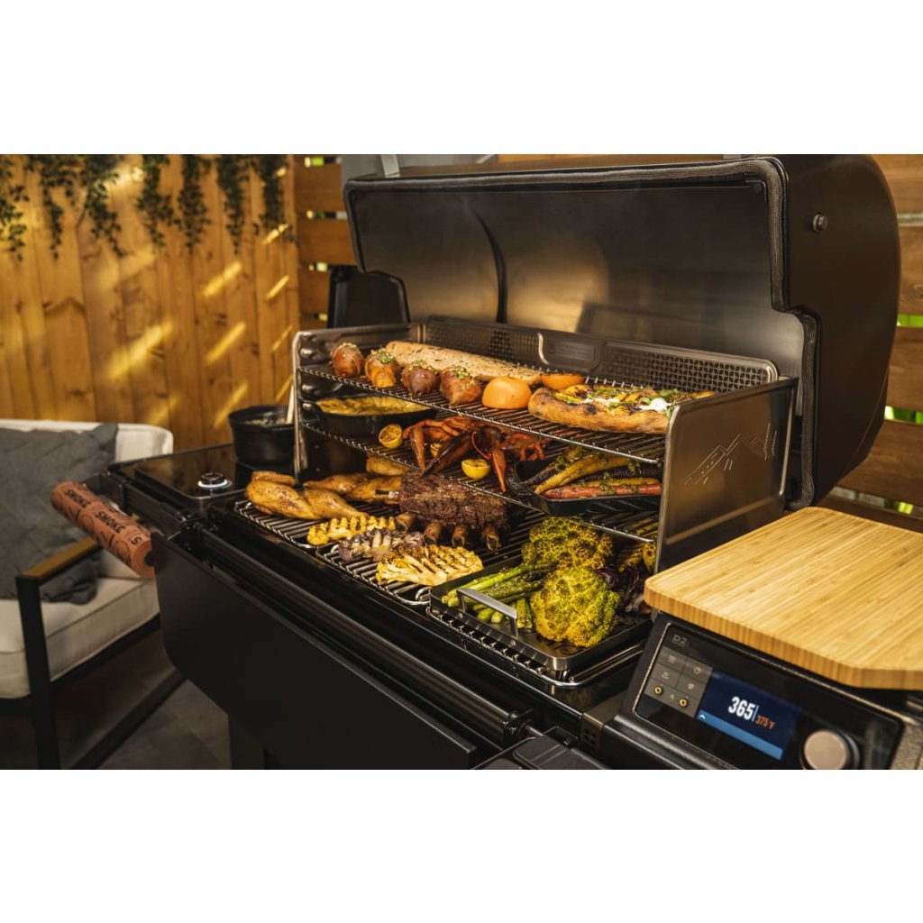 Luxus na Timberline XL je v tom, jak všechno hraje dohromady: kouř je veden tak, aby kolem jídla proudil průběžně a dával maximum chuti bez přepálení; bezdrátové sondy hlídají přesné propečení bez jediného kabelu, takže rozhoduješ podle dat, ne odhadu; a indukční vařič vedle grilovací plochy z něj dělá kompletní pracovní stanici – omáčka, glazura, příloha nebo finální redukce vzniká ve stejném tempu jako maso na roštu. Výsledek není jen „pohodlné grilování“. Je to prémiový systém, který zvedá úroveň celého vaření venku – od prvního zapnutí až po servis na talíř.